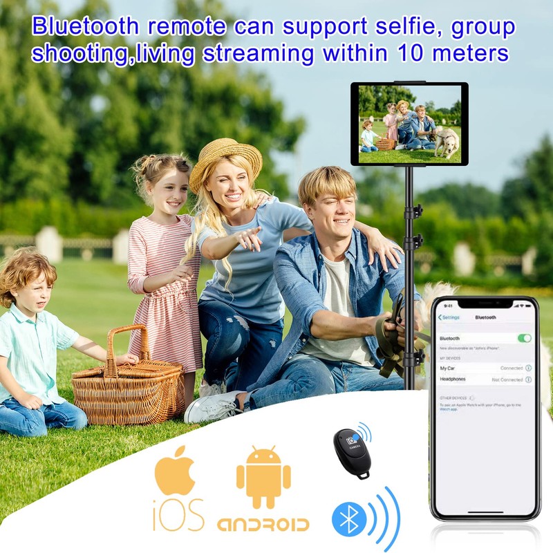 - Release your Hands: The tablet tripod stand can hold your tablet and free your hands, so that make you focus on what you are doing. The tablet tripod stand can be used anywhere, such as living room, gym, kitchen, office, classroom, etc. And it is perfect for Zoom calls, online music class, family online chats, watching movies.Also, this tablet tripod holder with a Bluetooth remote. Can use the Bluetooth remote control to take beautiful pictures, record clear videos, etc.