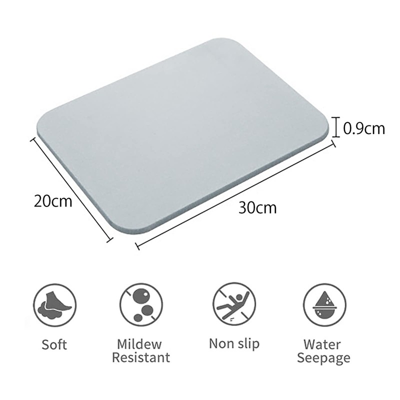 Diatomaceous Earth Bath Mat, Absorbent, Non-Slip, Quick Drying, 30 x 20 cm, Grey
