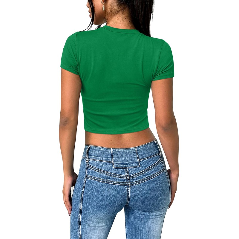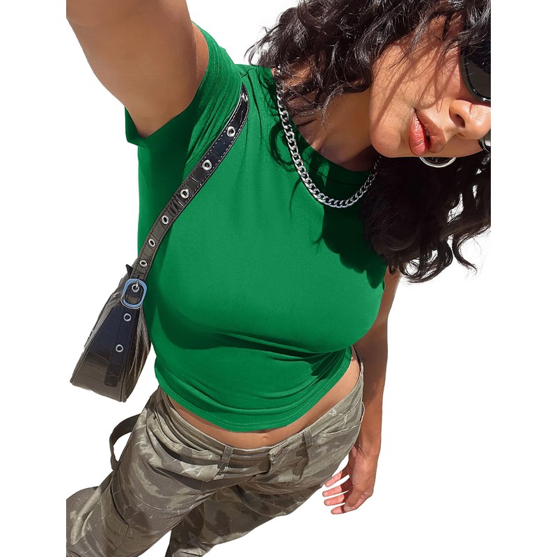 - Y2K Design: This top features a cute, slim-fitted, and casual style with a crew neck and short sleeves. It comes in both cropped and regular styles, giving you the option to wear it as a regular top or fold it up for a trendy crop top look. Whether you're dressing up for a night out or going for a casual look, this top is perfect for any occasion.