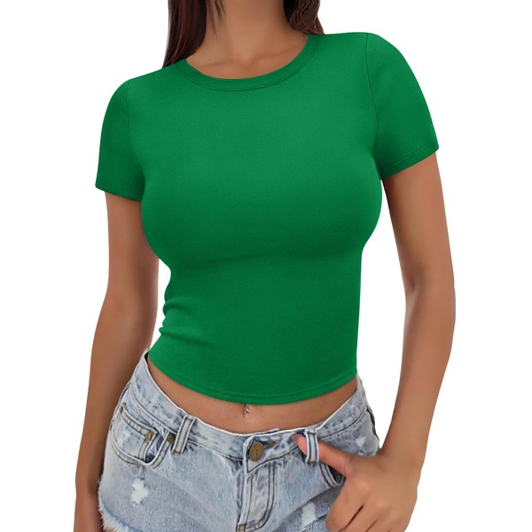 SAMPEEL Going Out Spring Tops for Women 2024 Plain T Shirts Basic Tees Kelly Green L