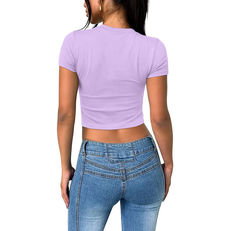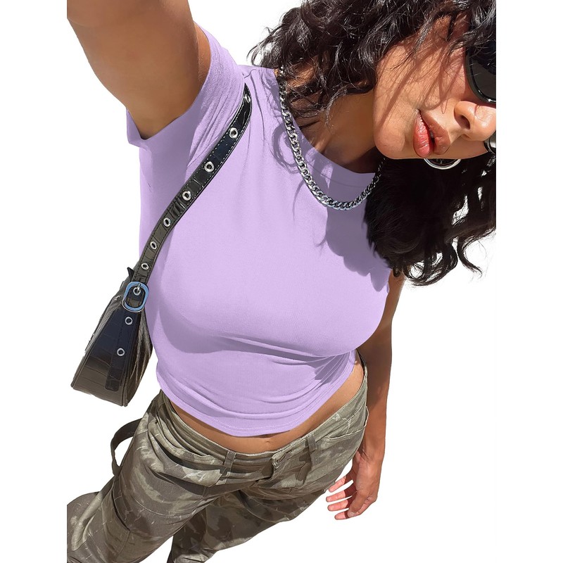 - Y2K Design: This top features a cute, slim-fitted, and casual style with a crew neck and short sleeves. It comes in both cropped and regular styles, giving you the option to wear it as a regular top or fold it up for a trendy crop top look. Whether you're dressing up for a night out or going for a casual look, this top is perfect for any occasion.