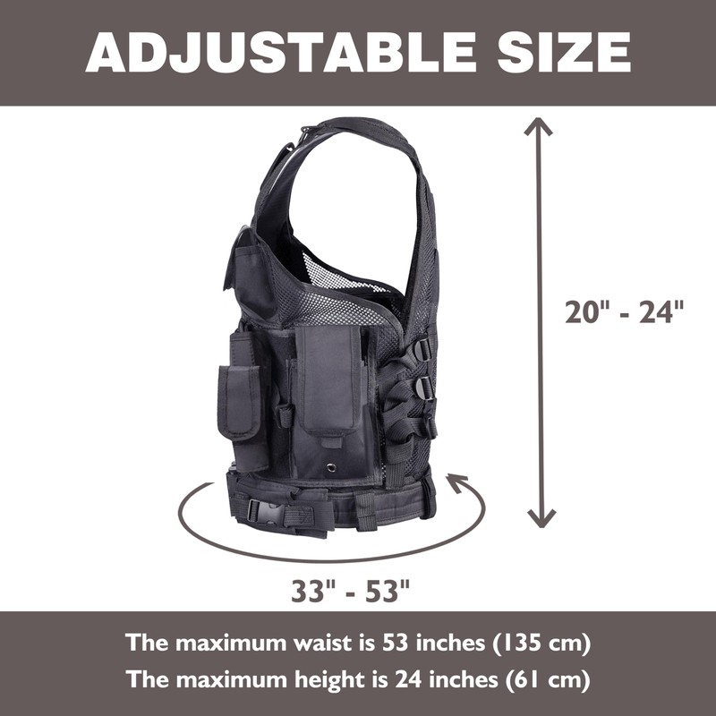 SAMSIER Airsoft Vest Adult Adjustable S-XXXXL, Tactical Vest for Men Lightweight Breathable 600D Nylon, Youth Combat vest for Paintball Training Black
