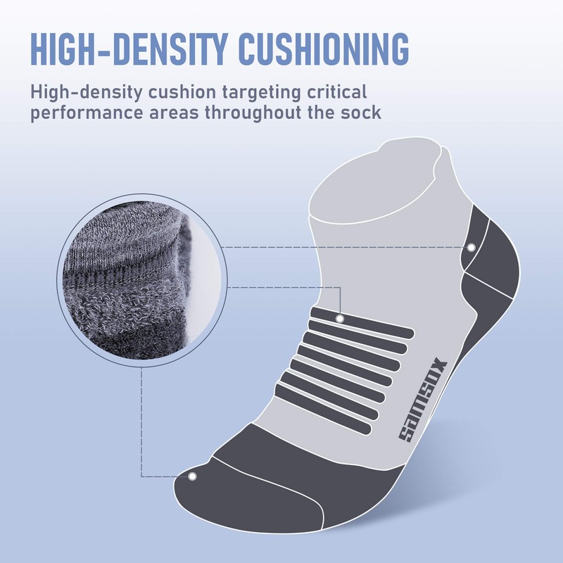 - Cushioned and Durable - Bottom of the foot is cushioned to add desired comfort and deliver blister-free experience during long workout or running sessions; High-density cushion targets critical performance areas throughout the wool ankle socks and boasts excellent impact absorption