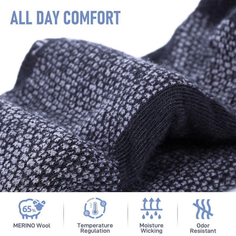 - Cool in Summer, Warm in Winter - Made from top-notch, ultra-soft and itch-free Merino Wool blend, our no-show athletic socks are thermoregulating, moisture-wicking, odor-resistant, and get you through extended training and activity with unparalleled comfort. Say no to sweaty, stinky feet