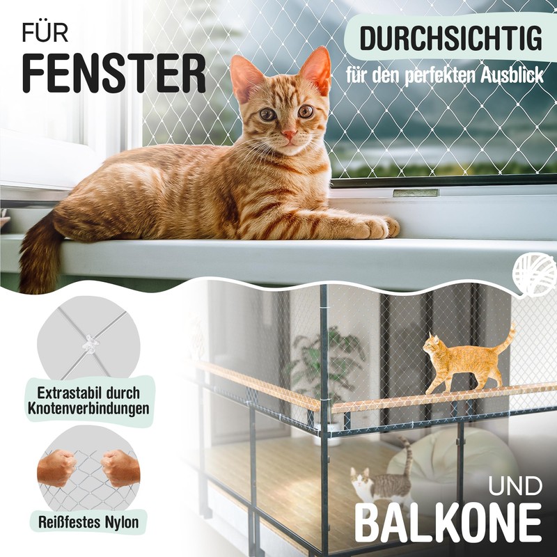 Note: Even if the net is made of highly tear-resistant nylon, we cannot guarantee that your cat will not find a way to cut the net.