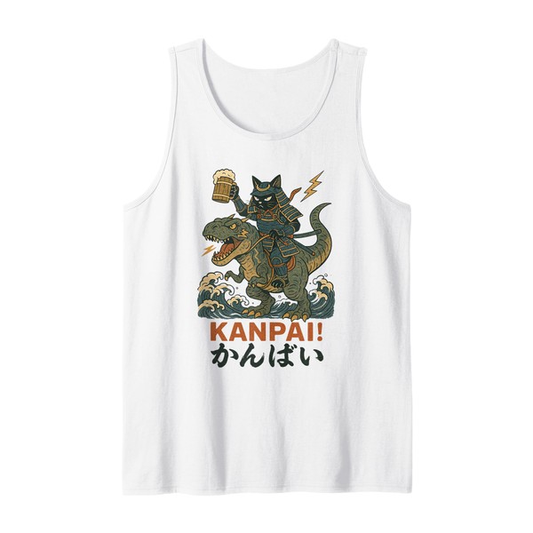 Samurai Cat on Tyrannosaurus rex. | Retro Japanese Vibes Tank Top