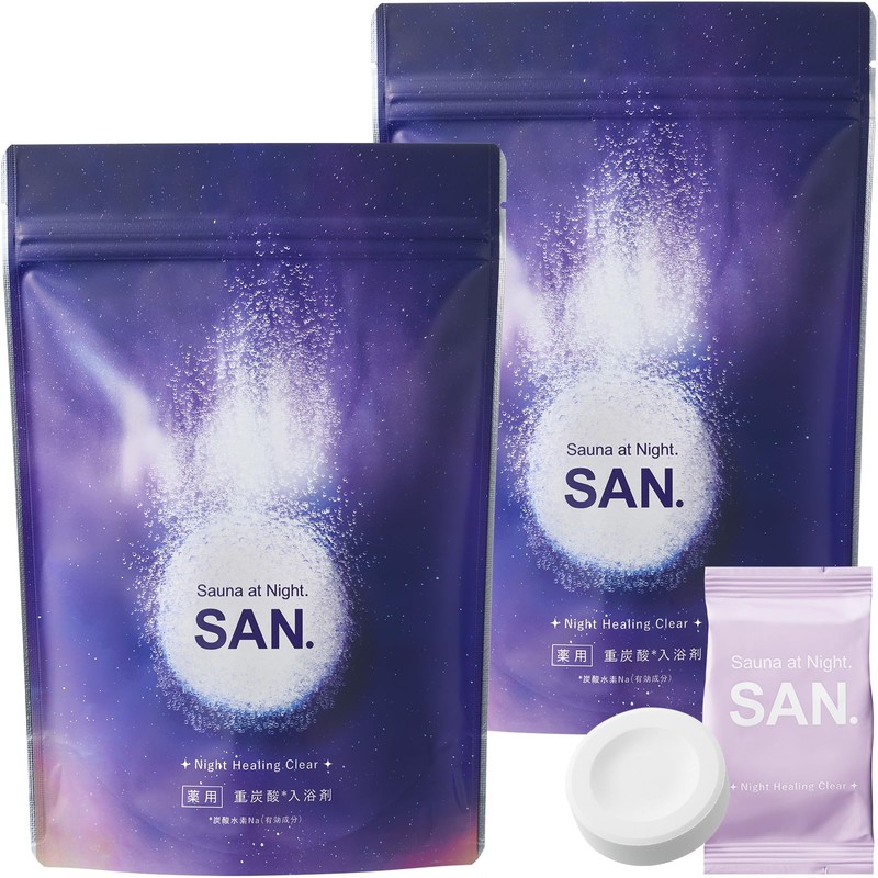SAN. サン 薬用 炭酸 入浴剤 ( 無色 無香料 / 45g×8錠×2 ) 医薬部外品 重炭酸 バスタブレット ( 疲労回復/肩こり/腰痛/冷え症/しもやけ )保湿 成分 ( ヒアルロン酸/コラーゲン/ゆずエキス ) プレゼント ギフト おしゃれ ( 2袋セット 無色透明 香り無し )