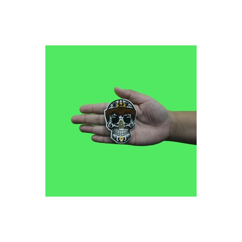 San Diego Friar Tuck Patch Sugar Skull Flower Embroidered Iron On Blue