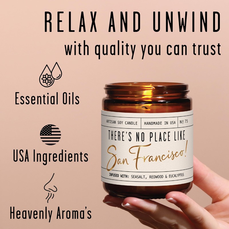 - CELEBRATE LIFE IN SAN FRANCISCO - Our 'There's No Place Like San Francisco' soy candle is the perfect gift to celebrate the breezy city of 'San Francisco' - proudly etched in gold foil script.