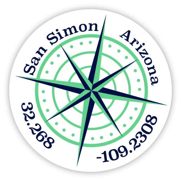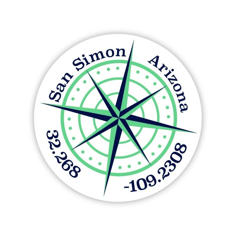 San Simon Arizona 2-Inch Vinyl Decal Sticker Latitude Longitude Compass Design
