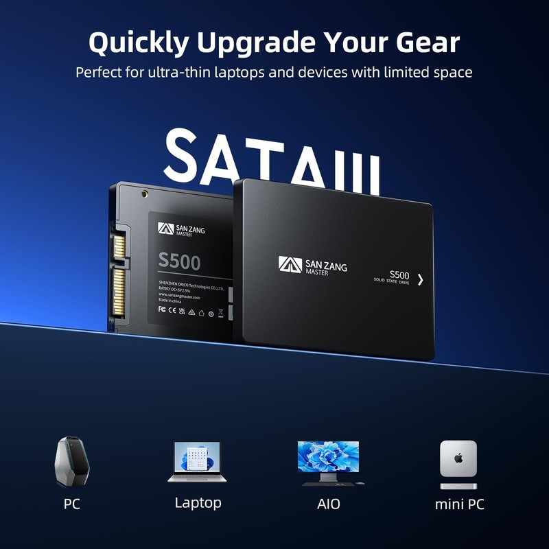 - Service support: SAN ZANG MASTER S500 SATA hard drive has been tested of strict quality to ensure that every detail meets high standards. Each SATA SSD provides 3 years maintenance and lifetime technical support. (1GB = 1 billion bytes, 1TB = 1 trillion bytes. Actual user capacity can be reduced according to the operating environment.)