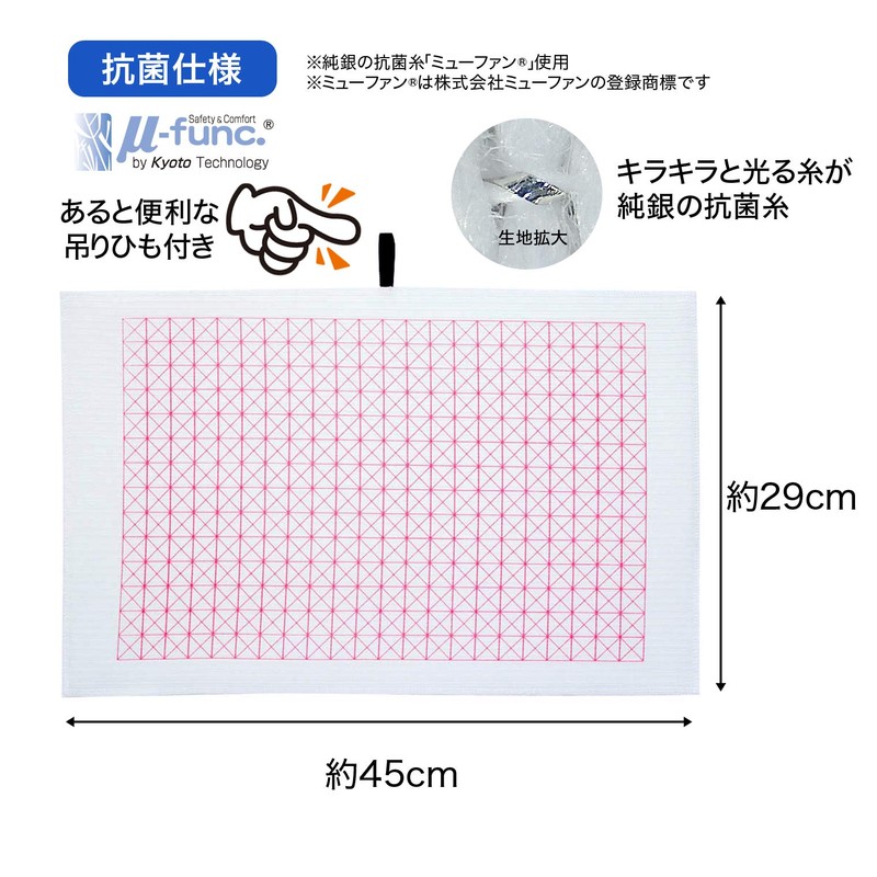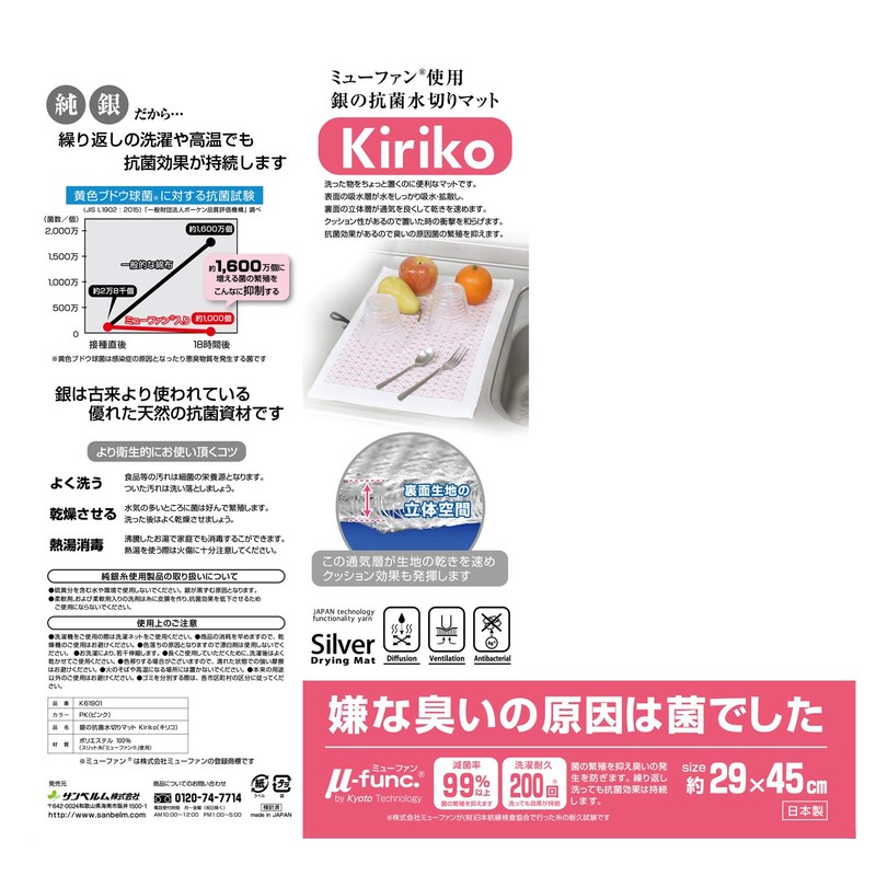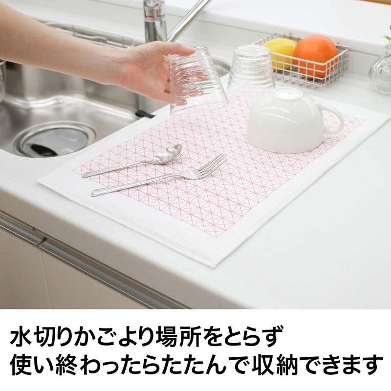 sanberumu Silver Anti-Bacterial Dish Drying Mat Kiriko (Chirico) Pink