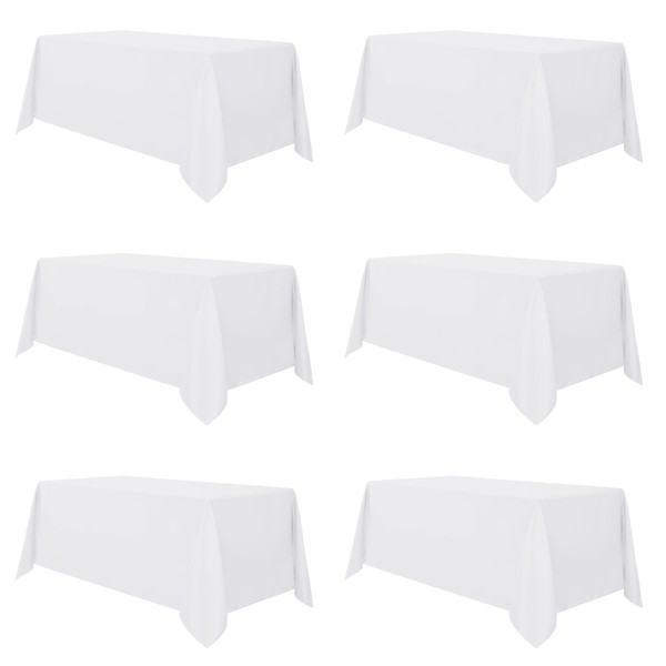 sancua 6 Pack White Tablecloth 90 x 132 Inch - Rectangle Table Cloth for 6 Feet Table Stain and Wrinkle Resistant Washable Polyester Table Cover for Dining Wedding Banquet Party Buffet Restaurant