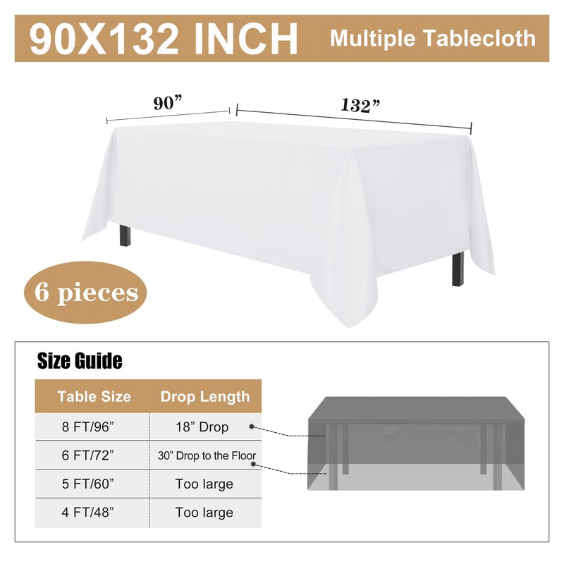 | Size: | 6 Pack 90x132 Inch Tablecloth |