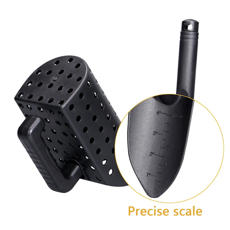 - TREASURE HUNTING :The scoop features 129 holes, each with a diameter of 0.38”~0.5” .The holes will assist you with removing dirt and sand while locating your treasure on the beach or river bed Quickly.