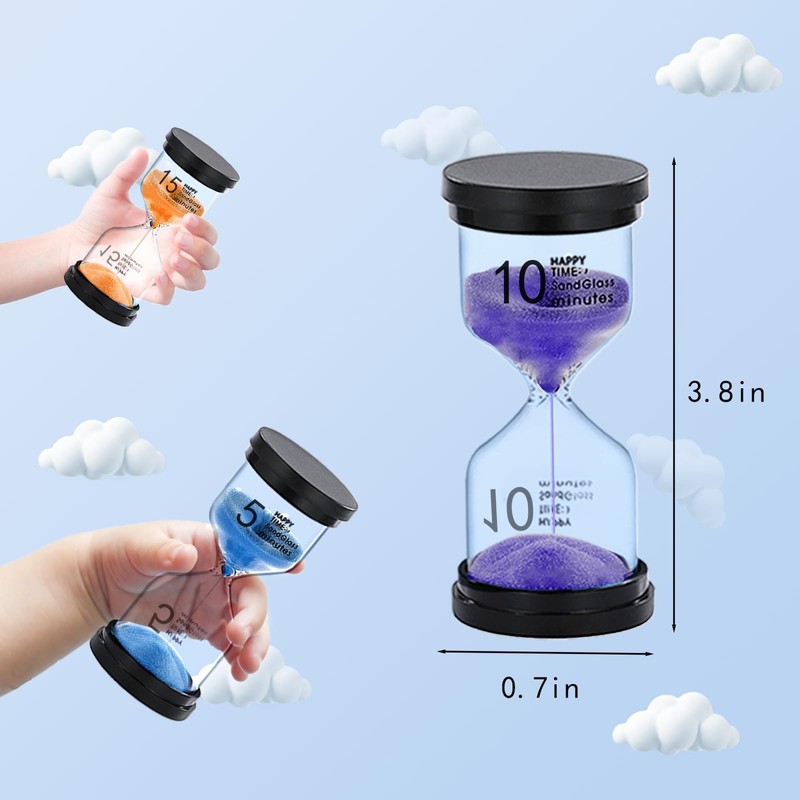 - Small and Portable Hourglass Timer for Kids: The size of the hour glass timer is 3.7*0.7 inch, which is designed to be compact and easy to carry, making them ideal for children to use.