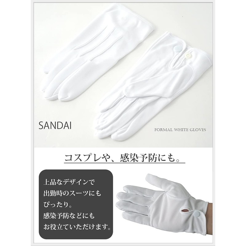 SANDAI Black Extra Formal Men's White Gloves with Hooks (S - 3L) Toray Nylon Gloves, 1, 2, 3, 4, 5, 10 Pairs Set, White (1 pair)