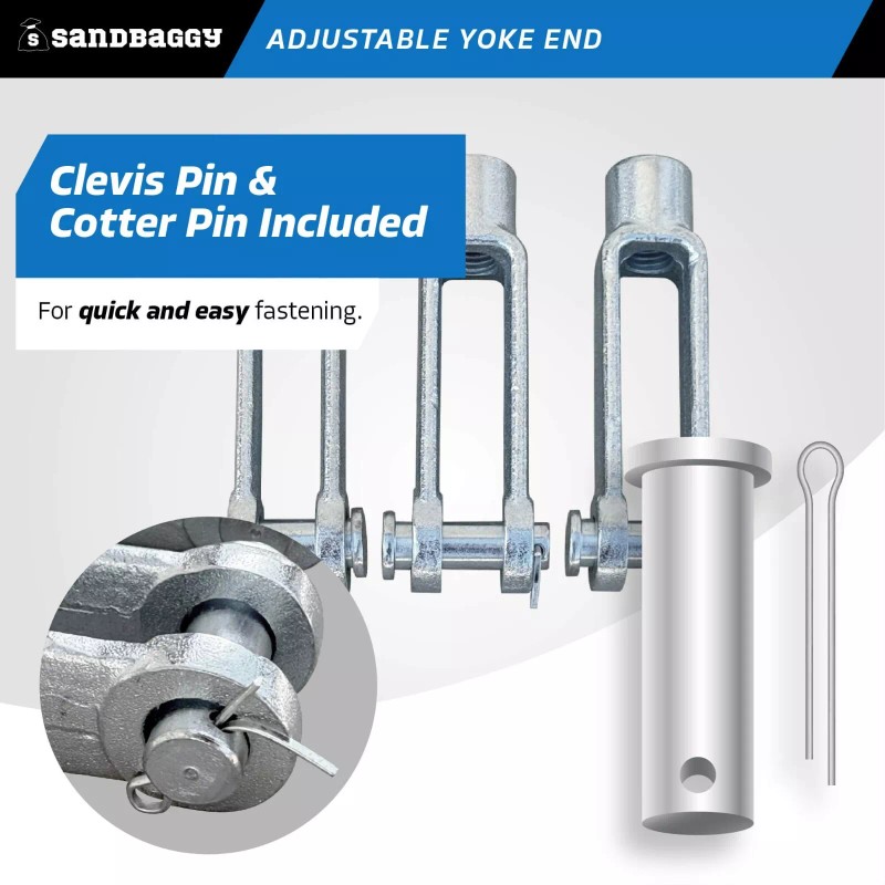 Sandbaggy 5/8"-18 Adjustable Yoke End - Galvanized [Pins Included] - 5