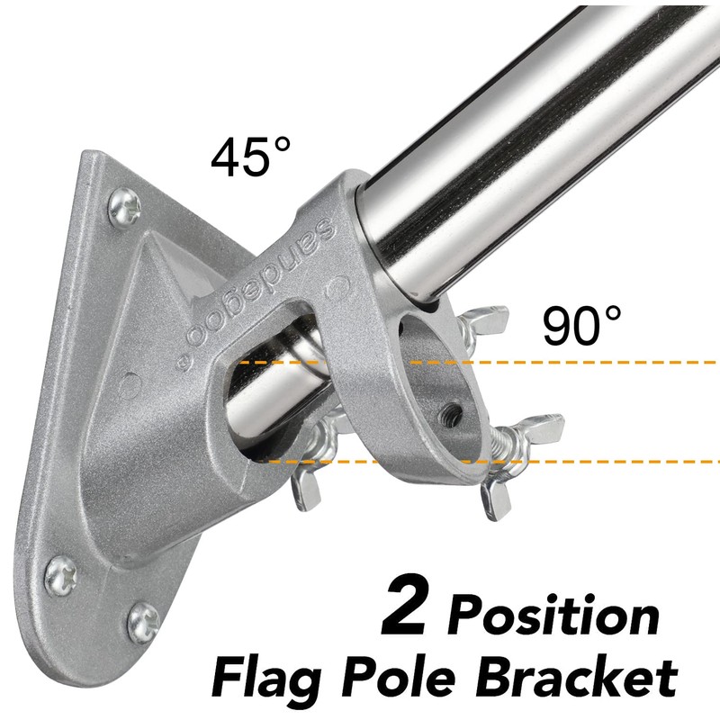 - Two-Position Bracket-You can either fly your flag horizontally,or fly it at a 45upward angle per your need!