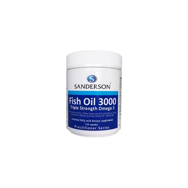SANDERSON Fish Oil 3000 has all the EPA and DHA of 3000mg, but in an easy to swallow 1500mg softgel capsule; ideal for people taking higher doses on regular basis.