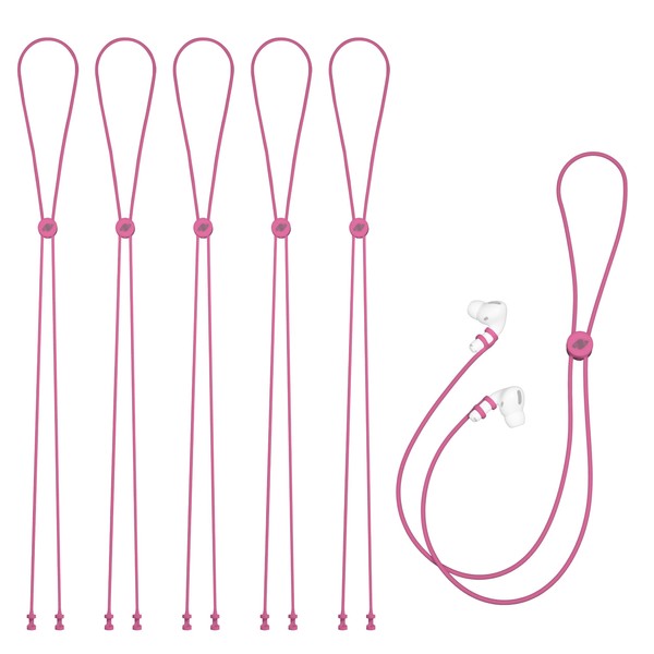 SANDIAN Airpods Strap, Anti-Loss Silicone Cord Holder for Airpods Pro, 6-Pack, Pink, Adjustable Neck Strap with Secure Clips, [Pink Pack]