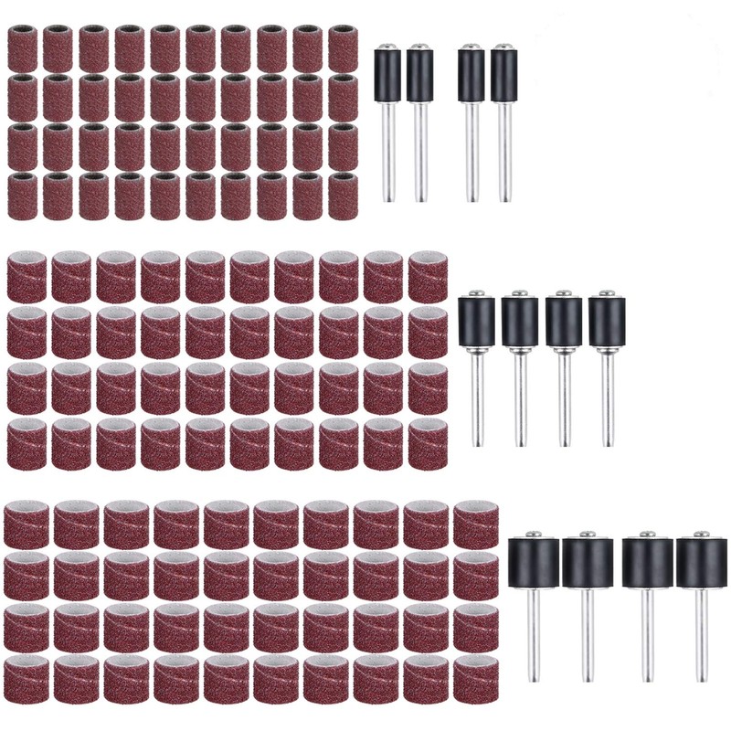✔The product consists of 132 pieces: there are 120 pieces sanding belt sleeves in 3 different diameters: (40 pieces - 1/2 inch), (40 pieces - 3/8 inch) and (40 pieces - 1/4 inch). The length of the sanding belt is 13 mm.