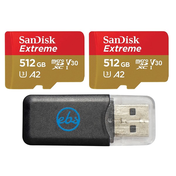 SanDisk 512GB Memory Card Micro SDXC Extreme (2 Pack) Works with DJI Drone Series Mini 4 Pro (SDSQXAV-512G-GN6MN) V30 A2 4K UHD UHS-I Bundle with (1) Everything But Stromboli MicroSD Card Reader