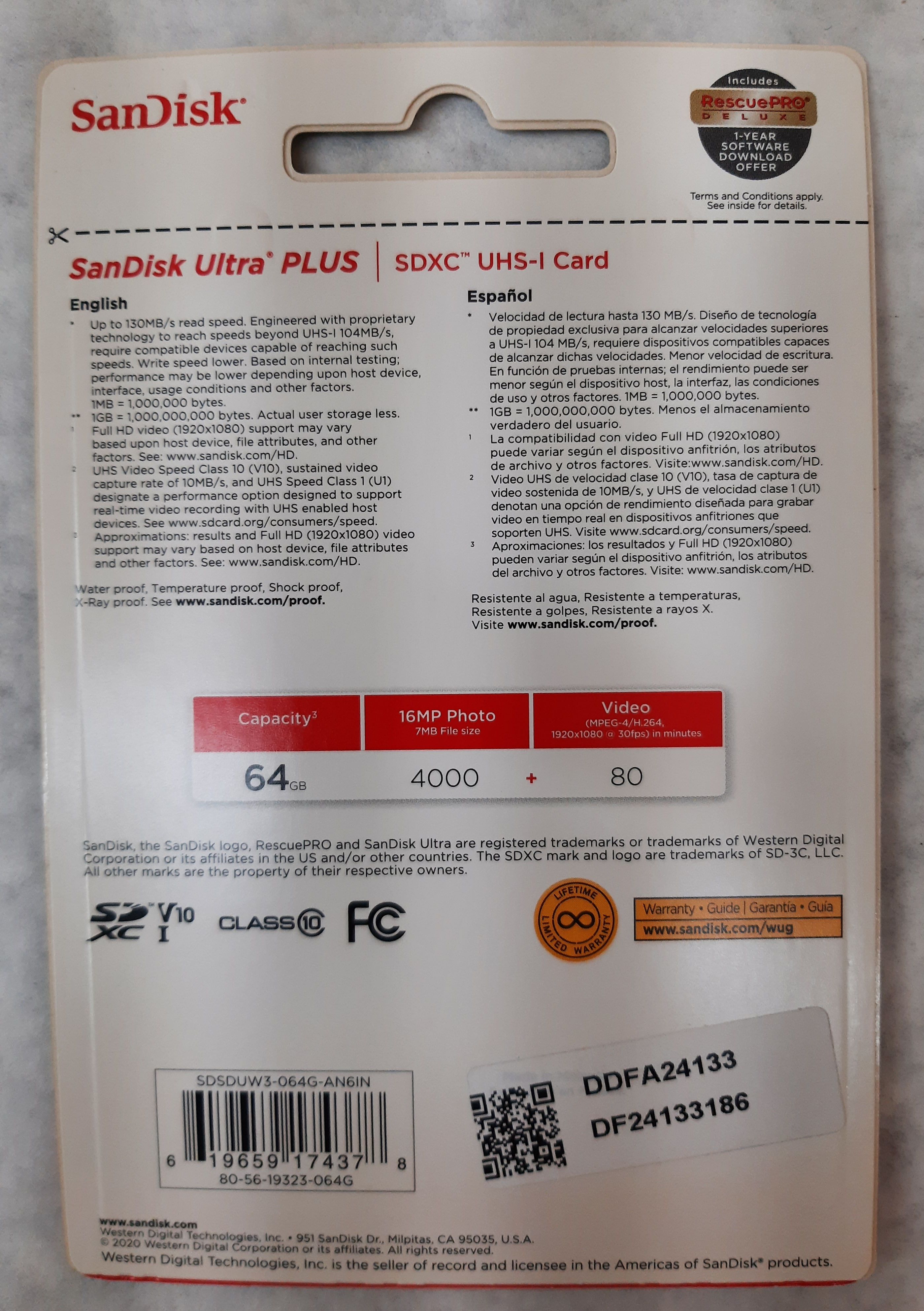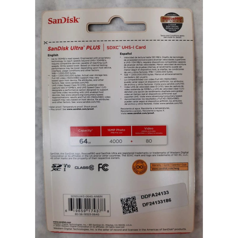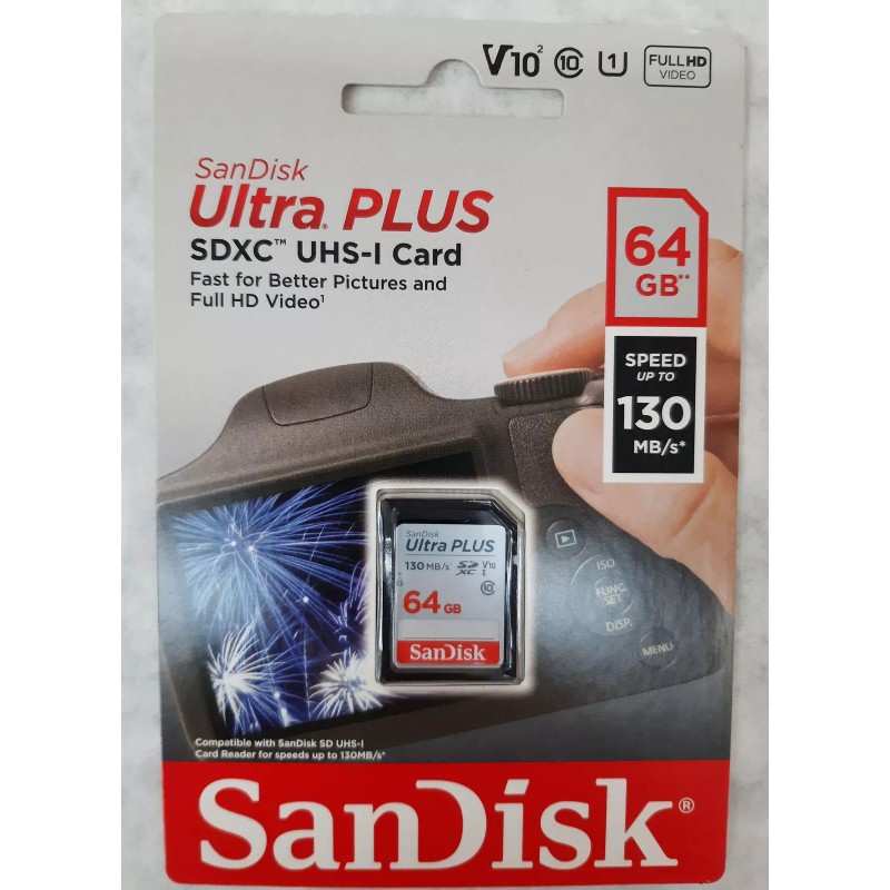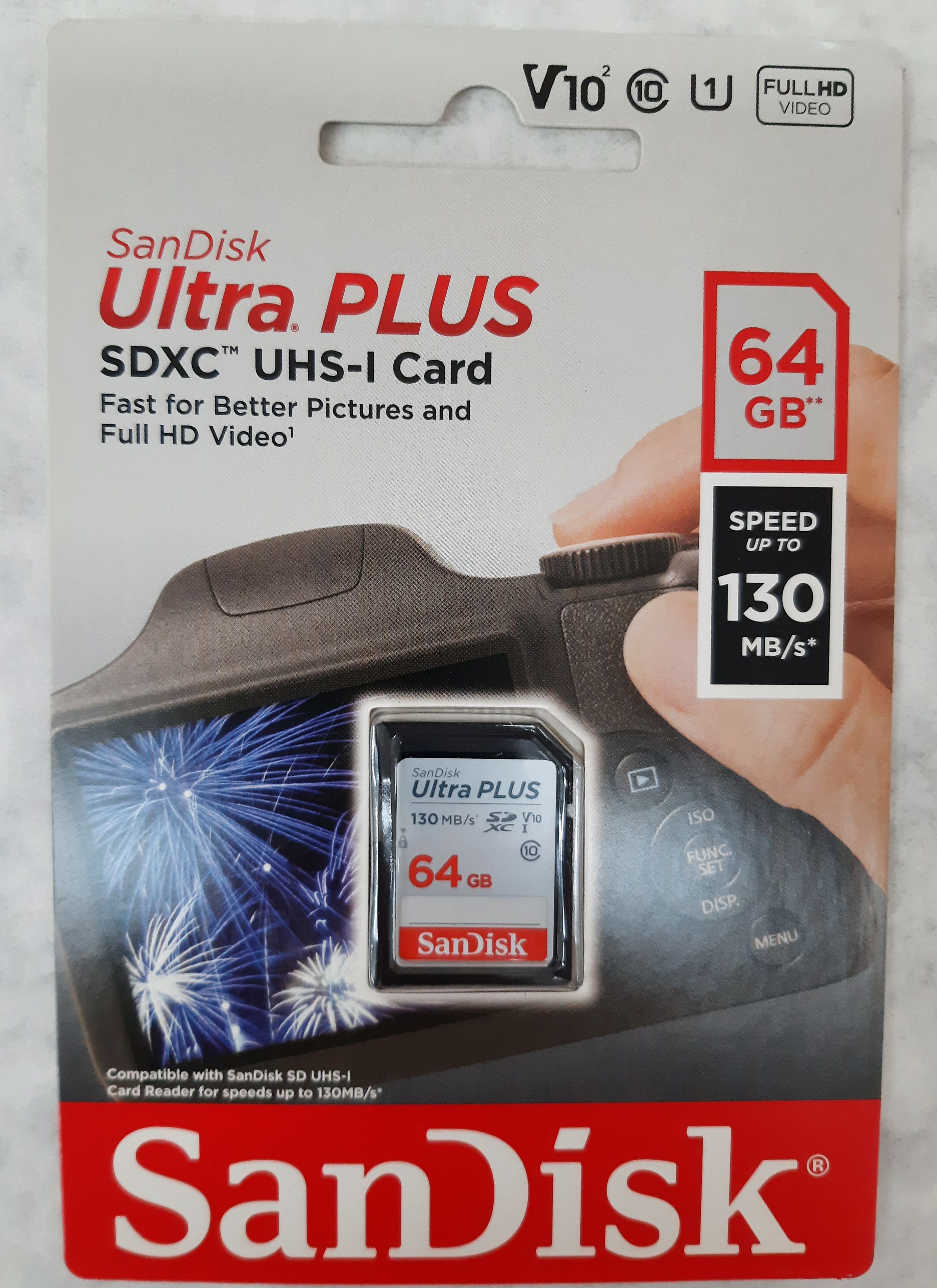 Lot of 2 SanDisk Ultra Plus SDXC UHS-I Memory Card SDSDUW3-064G-AN6IN