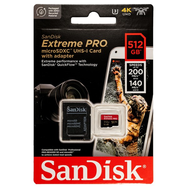 SanDisk microSD 512GB Extreme PRO Memory Card with Adapter works with DJI Mini 4 Pro Action Drone (SDSQXCD-512G-GN6MA) A2 UHS-I U3 4k Bundle with 1 Everything But Stromboli MicroSDXC & SD Card Reader