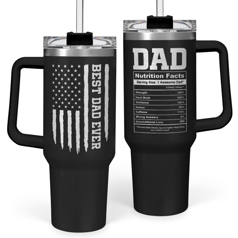 SANDJEST Best Dad Ever Tumbler 40oz Stainless Steel Insulated with Lid & Straw, Dads Gifts for Christmas Birthday Valentine Fathers Day, Father Coffee Cup Gift for Dad Daddy Father from Daughter Son