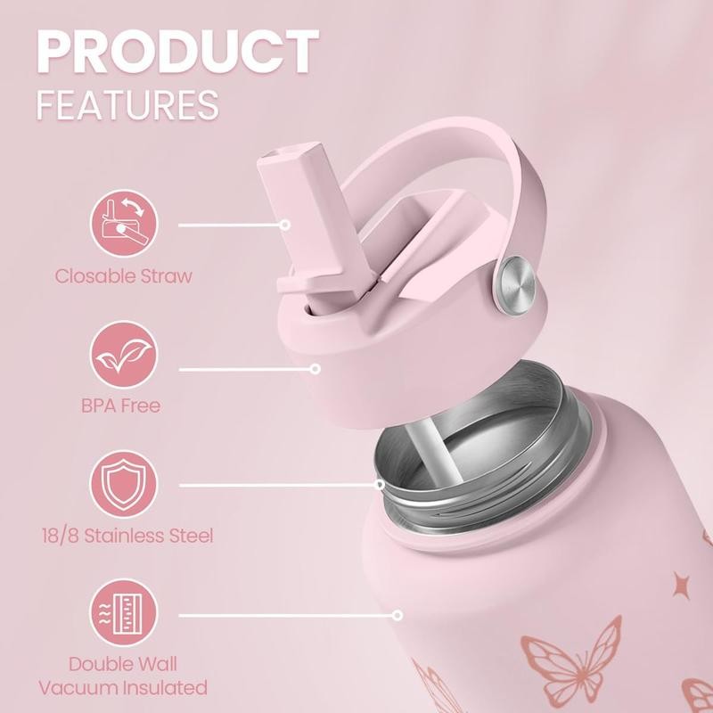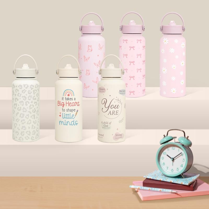 - Sandjest SipChic 32oz Sports Water Bottle with Flip Straw & Handle, Portable Insulated Stainless Steel Leak Proof, Travel Gym Mom Nurse Christmas Gift