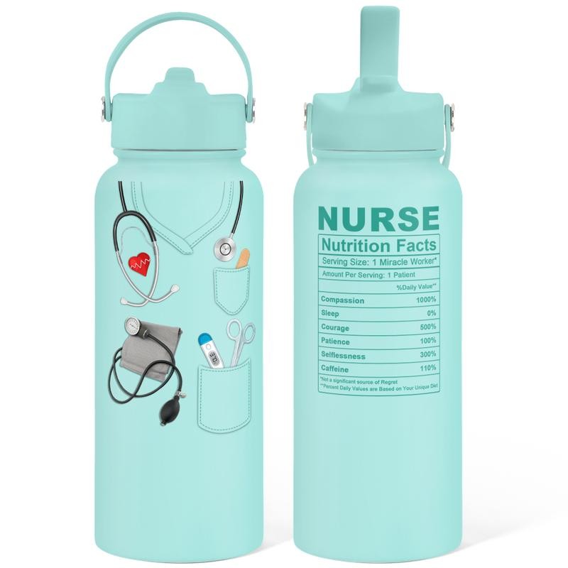 Sandjest SipChic 32oz Sports Water Bottle with Flip Straw & Handle, Portable Insulated Stainless Steel Leak Proof, Travel Gym Mom Nurse Christmas Gift:_Nurse 1