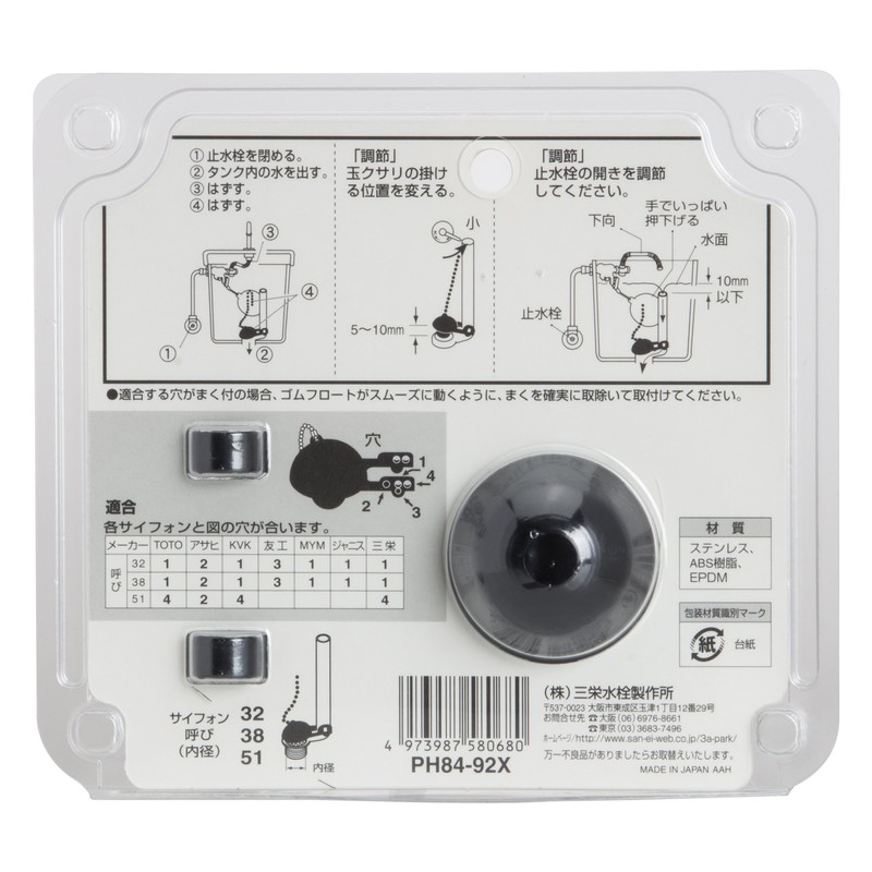 SANEI PH84-92X Toilet Parts, Low Tank Rubber Float, Compatible with Other Manufacturers Other Than LIXIL Multi-Type