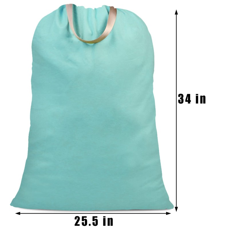 SANFERGE - Bolsa de lavandería de lona de algodón con asas y correas de cordón, bolsas de lavandería extra grandes resistentes para lavandería y hogar, 25.5 x 34 pulgadas, azul azulado