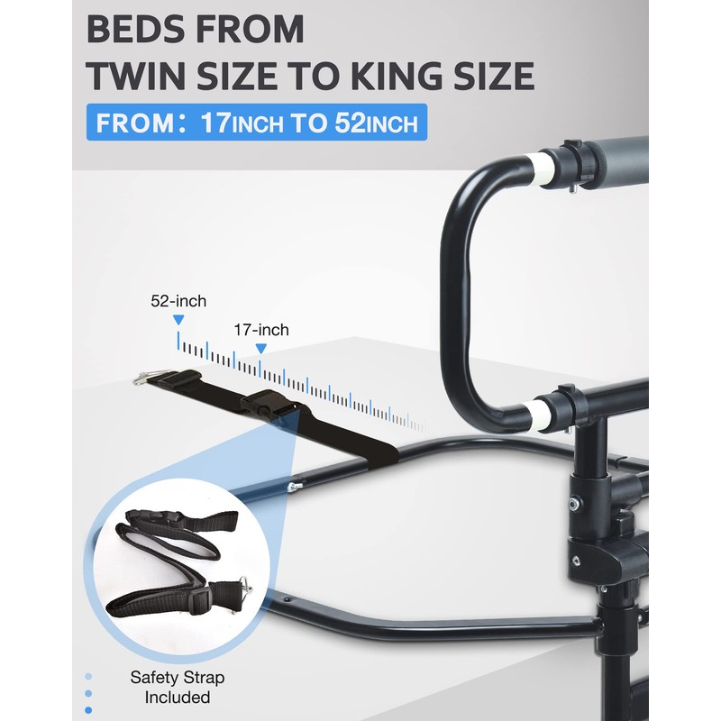 • The bed support rail has height-adjustable legs and grip bar, so that the product can be installed on any size bed (double bed, full bed, twin bed, king bed) on left hand side. Easily assemble the bed safety rail without tools or hassle.
