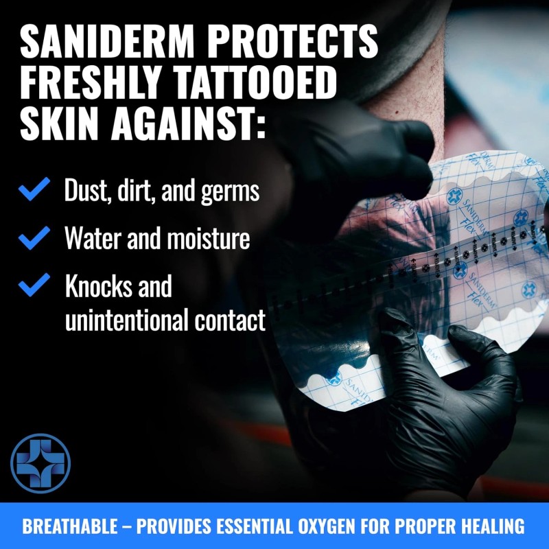 • SEALED, STERILE, AND LATEX-FREE – Saniderm bandages are the only tattoo bandages that come sealed and 100% sterile. This is important for maintaining a clean and healthy environment that will ensure the best tattoo-healing experience. Saniderm bandages are also 100% latex-free.