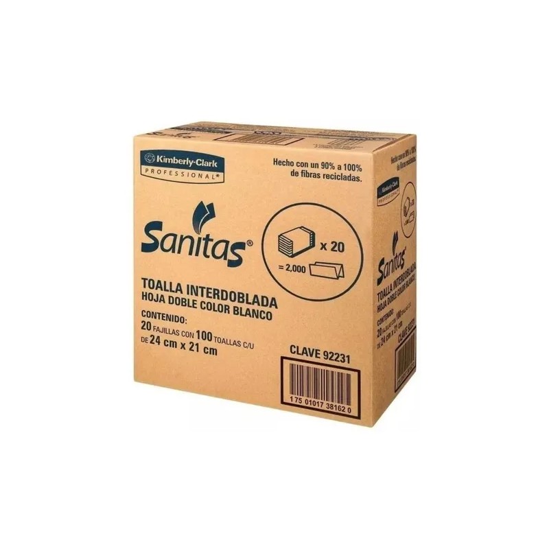 Sanita Toalla Interdoblada Con 2000 Piezas 20 Paquetes D 100