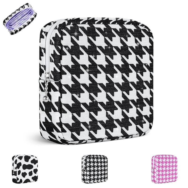 Sanitary Pads Storage, Tampon Storage, Menstruation Period Bag with Zip, Mini Sanitary Napkin Storage Bag for Nursing Pads, Gifts for Girls (Houndstooth Black)