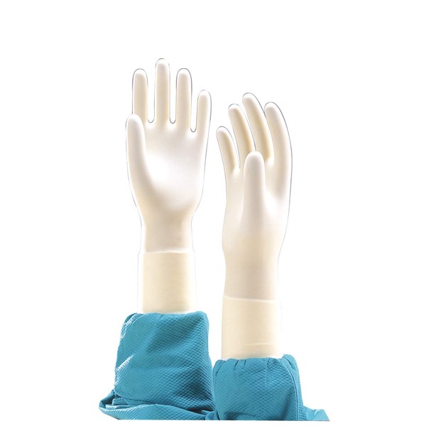 - Made of natural rubber, powder free, curved fingers, and gamma ray sterilized