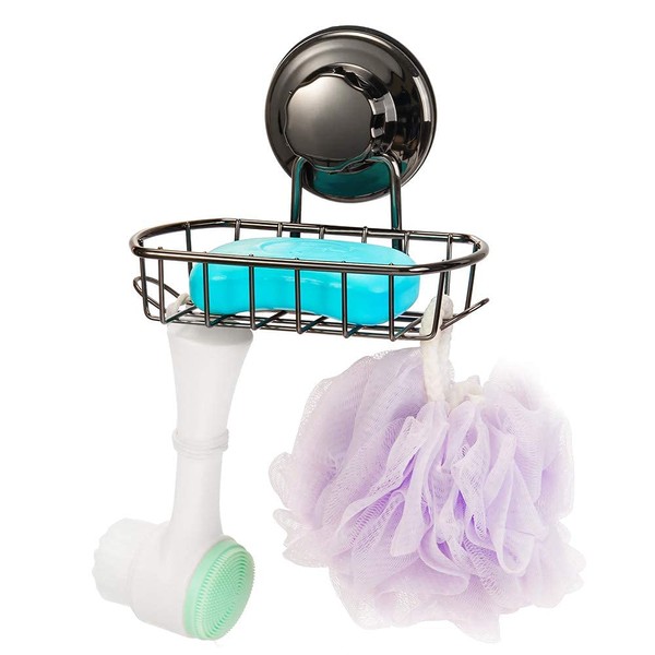 SANNO 石鹸置き ソープディッシュ スポンジ置き 吸盤ソープホルダー 石鹸ホルダー 錆に強いステンレス製のソープディッシュ ソープトレイ 石鹸置きケース 水切り バス用品 フック付き ス用品 フック付き ブラックニッケル