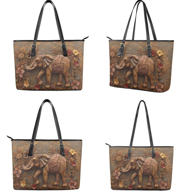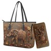 Sannovo Boho Elephant Print Top Handle Satchel Bags Floral Print Handbag and Wallet Sets Womens Satchel Purse Set Shoulder Purse with Leather Wallet Clutch, Brown