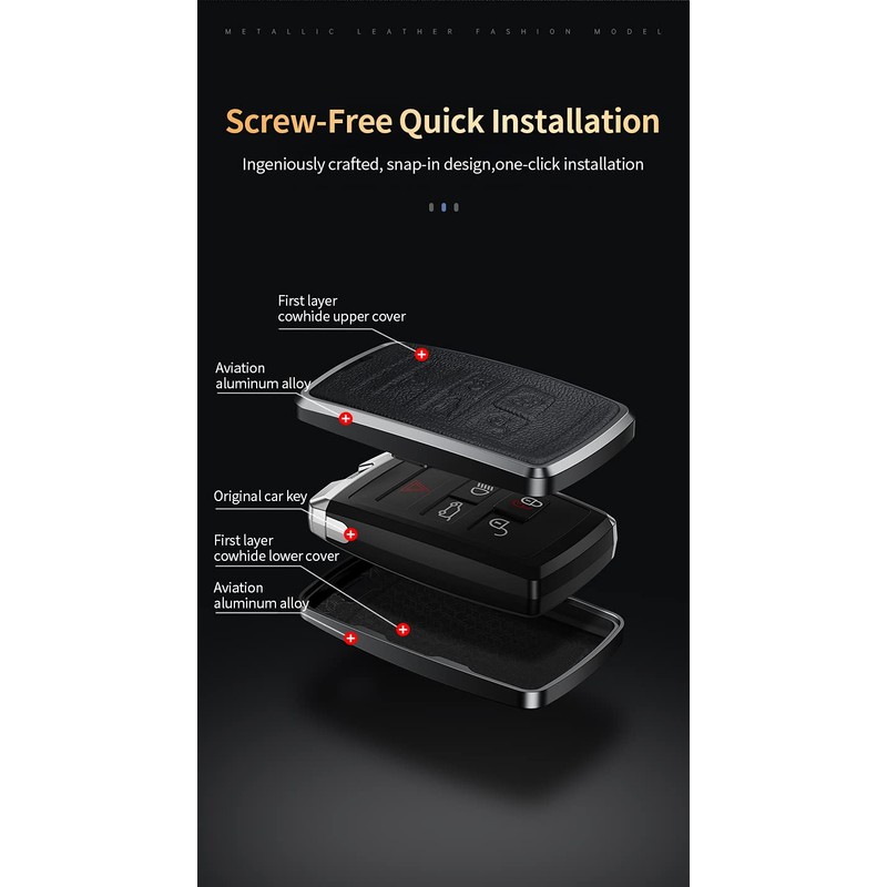 - 【Appearance design】Our car key case design to metal and leather spliced together with a elegant & fashion appearance and good feels in hand. Highlight the luxurious atmosphere. It is designed for daily use and is the best accessory to personalize and protect your key fob.