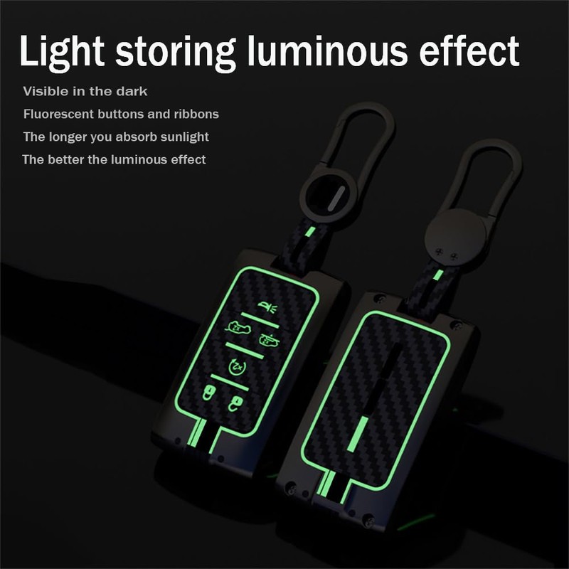 - 【Appearance design】The car key shell is fashionable in appearance, The carbon fiber pattern silicone case has unique simple lines will shine at night, makes people's eyes bright. The button of the key case With shine at night.