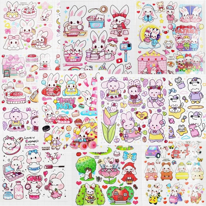 sanrio 10 sheets uncut Kawaii sticker sheets bundle bunny, korean stationery, kpop idol