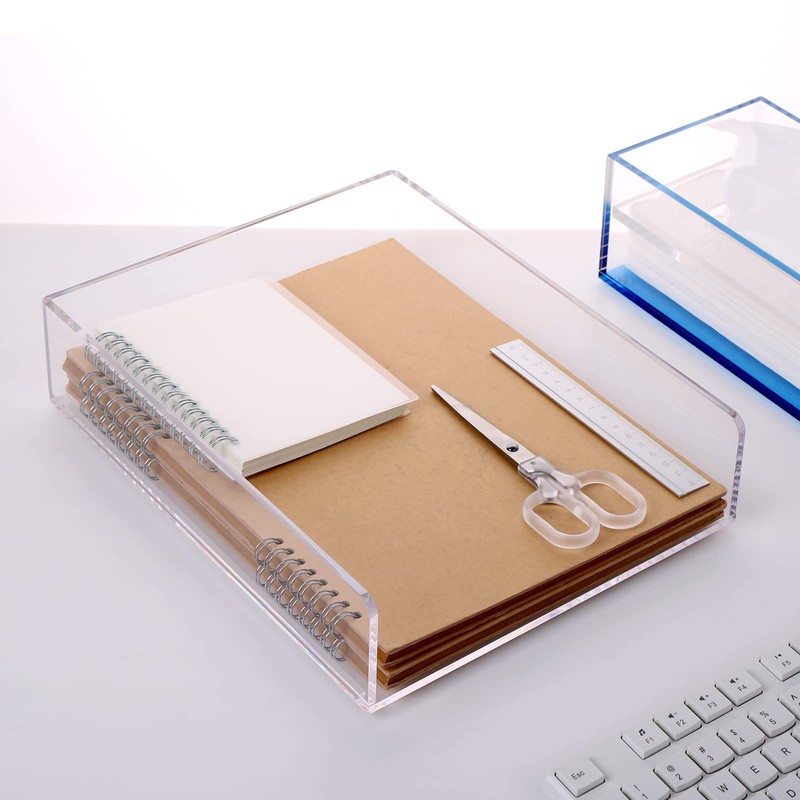 - DESKTOP FILE ORGANIZER:Crisp modern design realized with flawless, polished edge construction.Great for desk storage and holding Letter/A4 size paper, folders, binders, stationary, desk accessories.