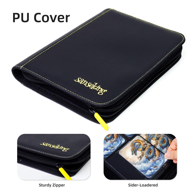 Sanseking Premium Zip Card Binder,160 Pockets Trading Card Album Folder,Double Side Loading PU Cover Collector for Standard Cards, MTG, TCG, Game Cards, Sport Cards (4 Pocket)