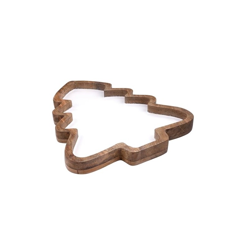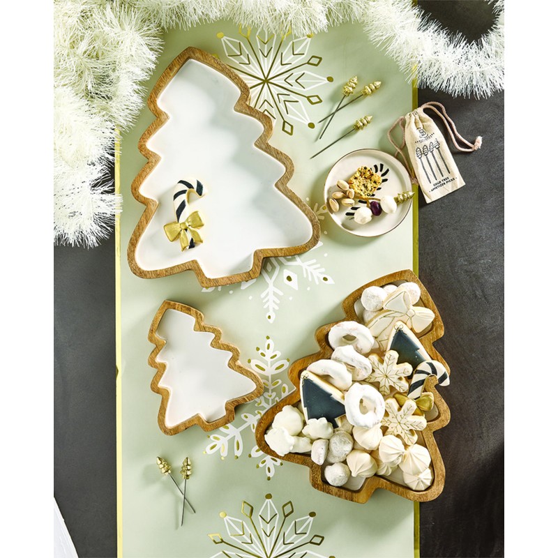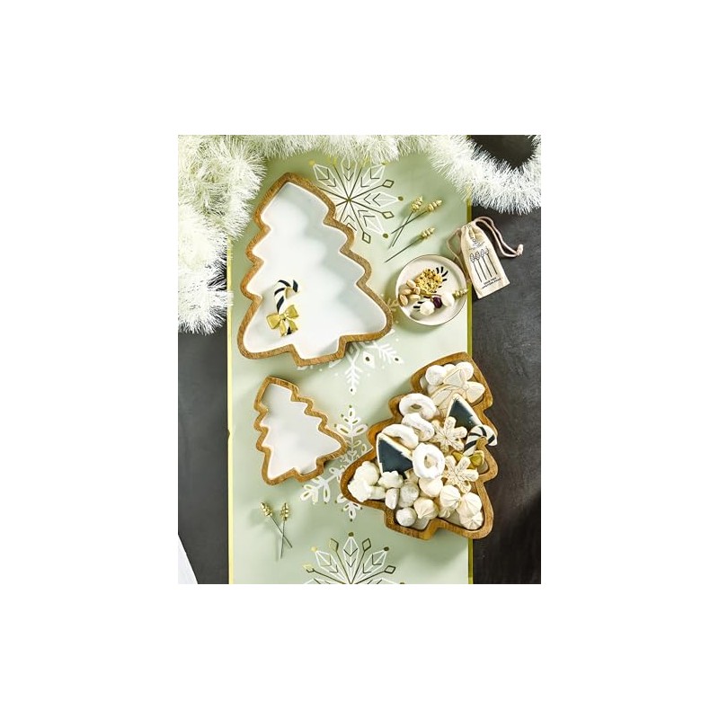 Santa Barbara Design Studio Mango Wood and Enamel Christmas Tree Shaped Platt...