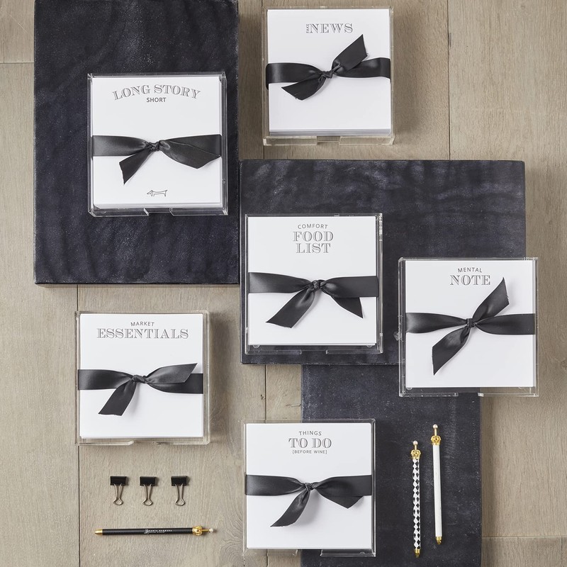 - NOTEPAPER & HOLDER SET: 125 Loose leaf papers in an attractive acrylic tray