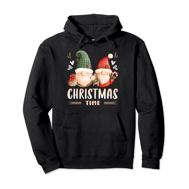 Santa Claus Gnome Christmas Time Pullover Hoodie, black