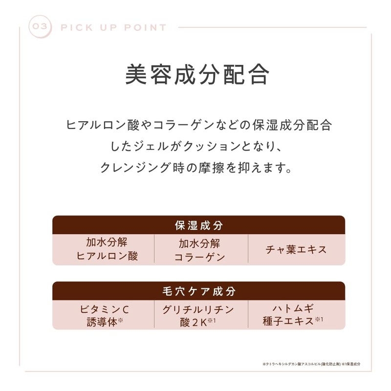 - A Japanese tea scented serum cleansing gel that removes makeup and pore stains (blackheads)